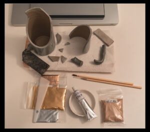 🍃Kırılan parçalar pudra altın, bronz, gümüş karıştırılmış reçine kullanılarak birleştiriliyor.